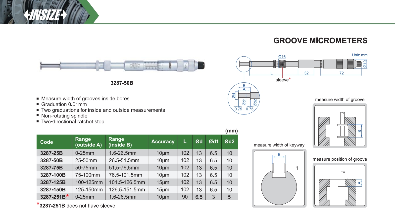 | 3287-251B | 0.01mm | 0-25mm | 1.6-26.5mm | does not have sleeve |