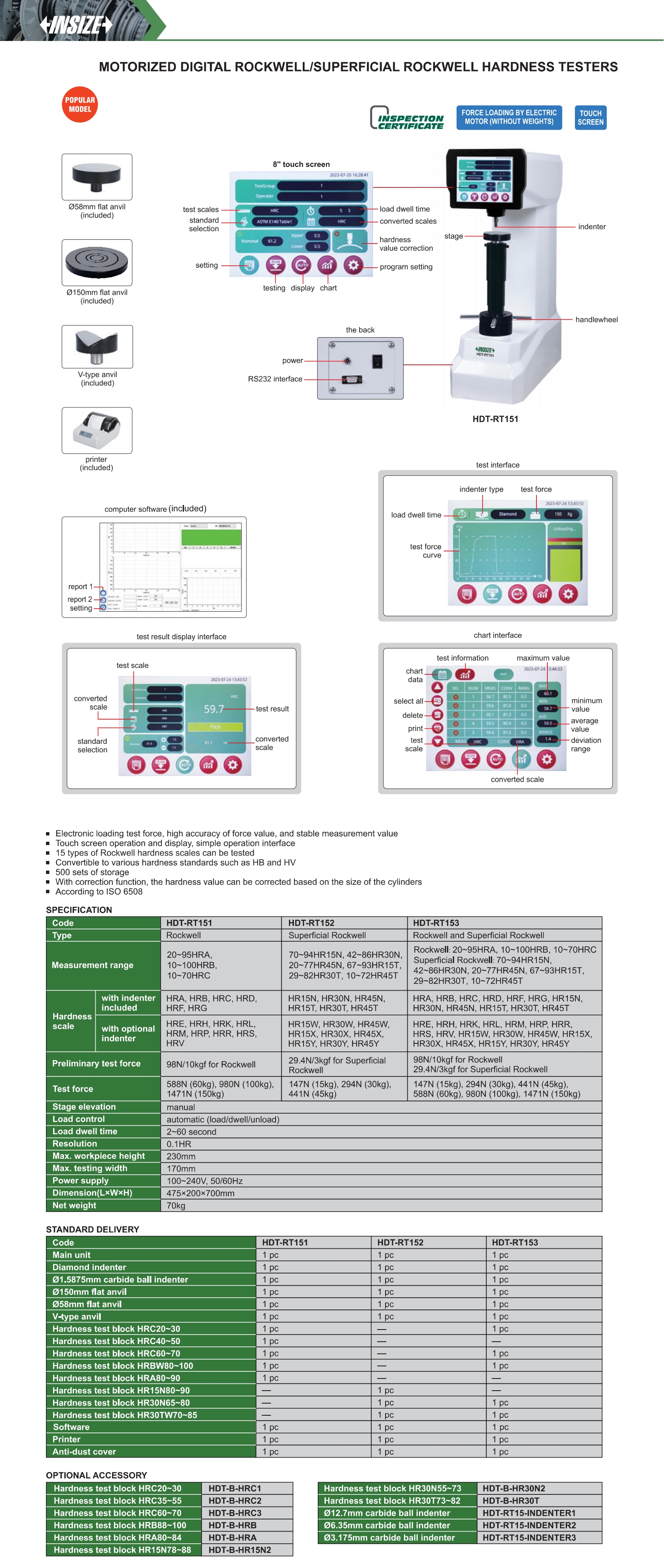 | HDT-RT153 | 0.1HR | automatic (load/dwell/unload) | 230mm | 170mm | HRA, HRB, HRC, HRD, HRF, HRG, HR15N, HR30N, HR45N, HR15T, HR30T, HR45T |