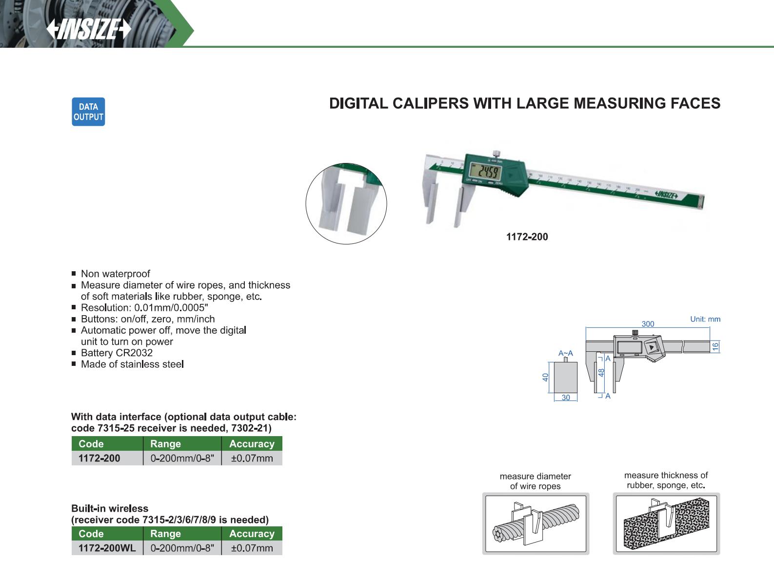 | 1172-200WL | 0-200mm/0-8" | ±0.07mm | 0.01mm/0.0005" | built-in wireless |