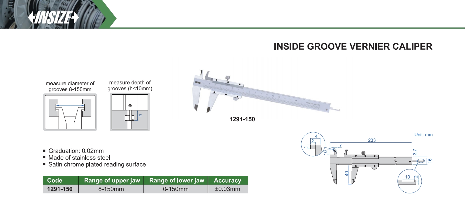 | 1291-150 | 8-150mm | 0-150mm | ±0.03mm | 0.02mm |
