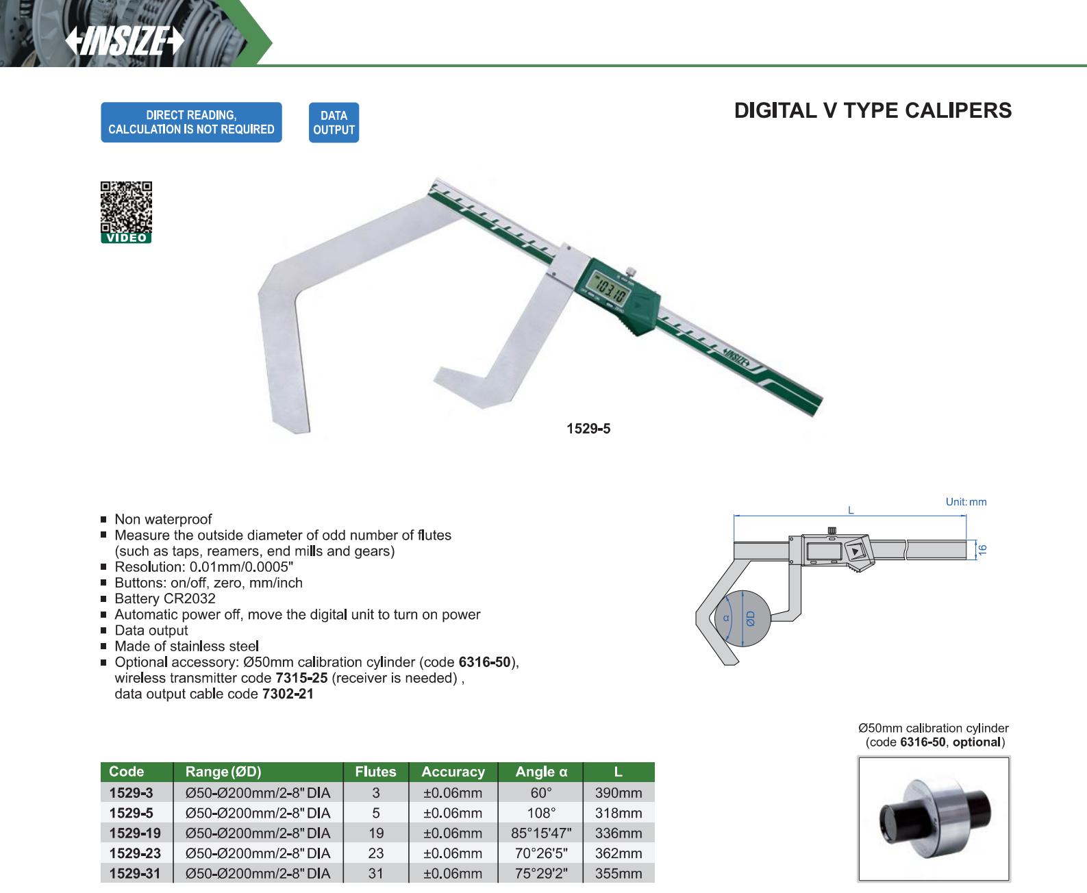 | 1529-23 | Ø50-Ø200mm/2-8" DIA | ±0.06mm | 0.01mm/0.0005" | with data interface |