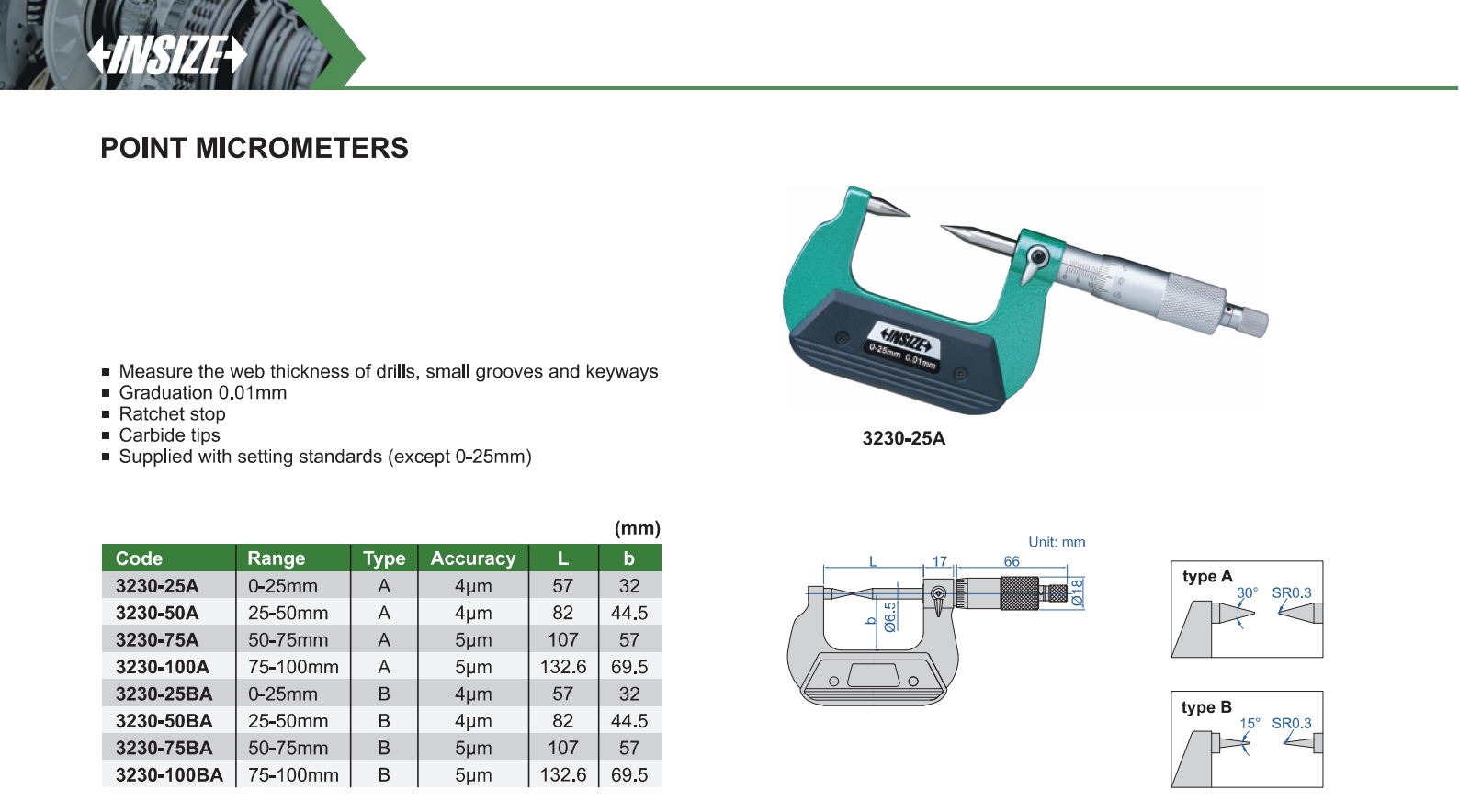 | 3230-25BA | B | 0-25mm | 4μm | 0.01mm |