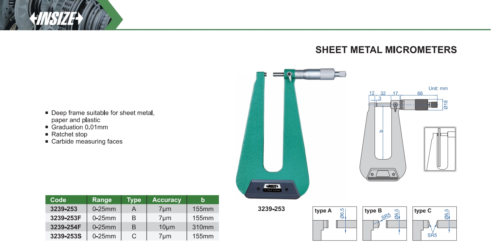 | 3239-253F | B | 0-25mm | 7μm | 0.01mm |