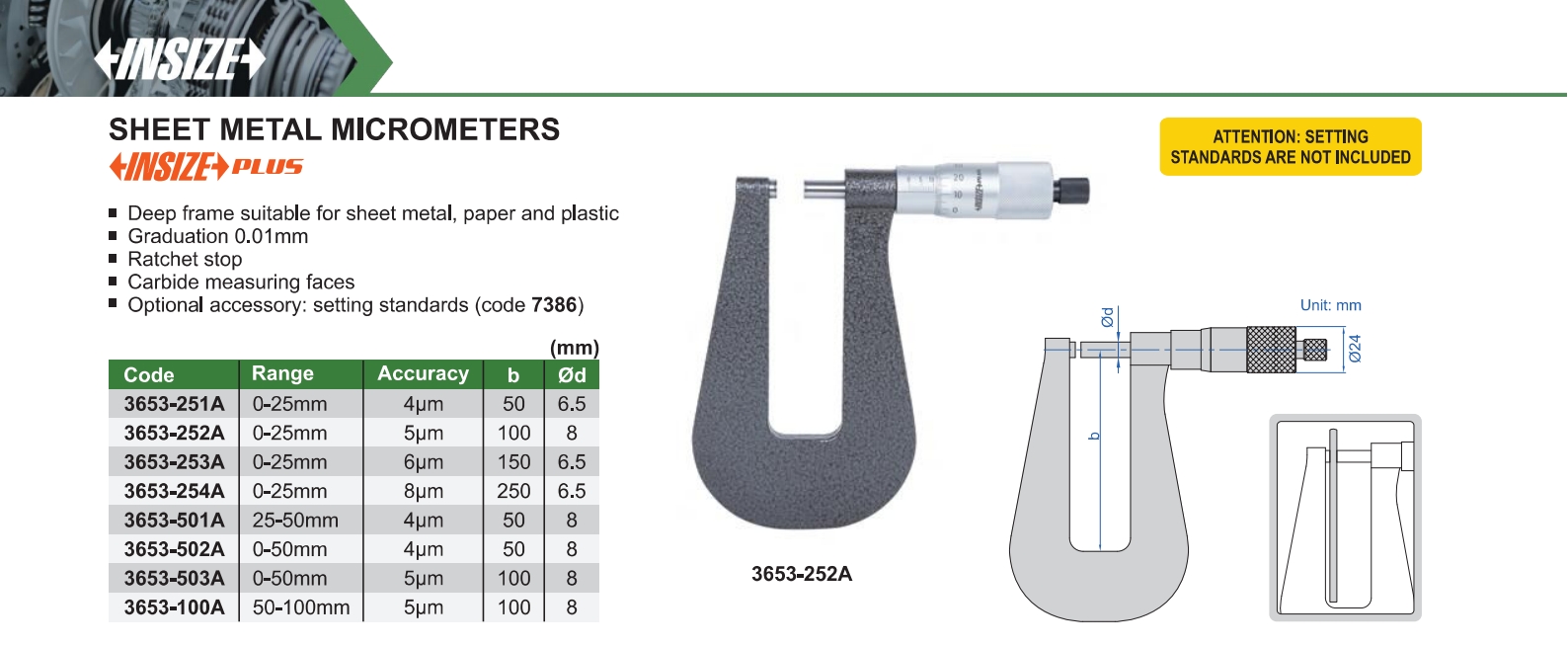 | 3653-252A | 0-25mm | 5μm | 0.01mm |