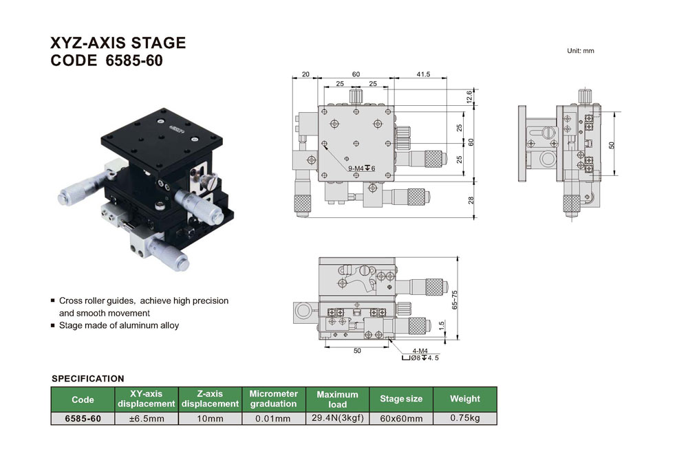 | 6585-60 | ±6.5mm | 10mm | 0.01mm | 60x60mm |