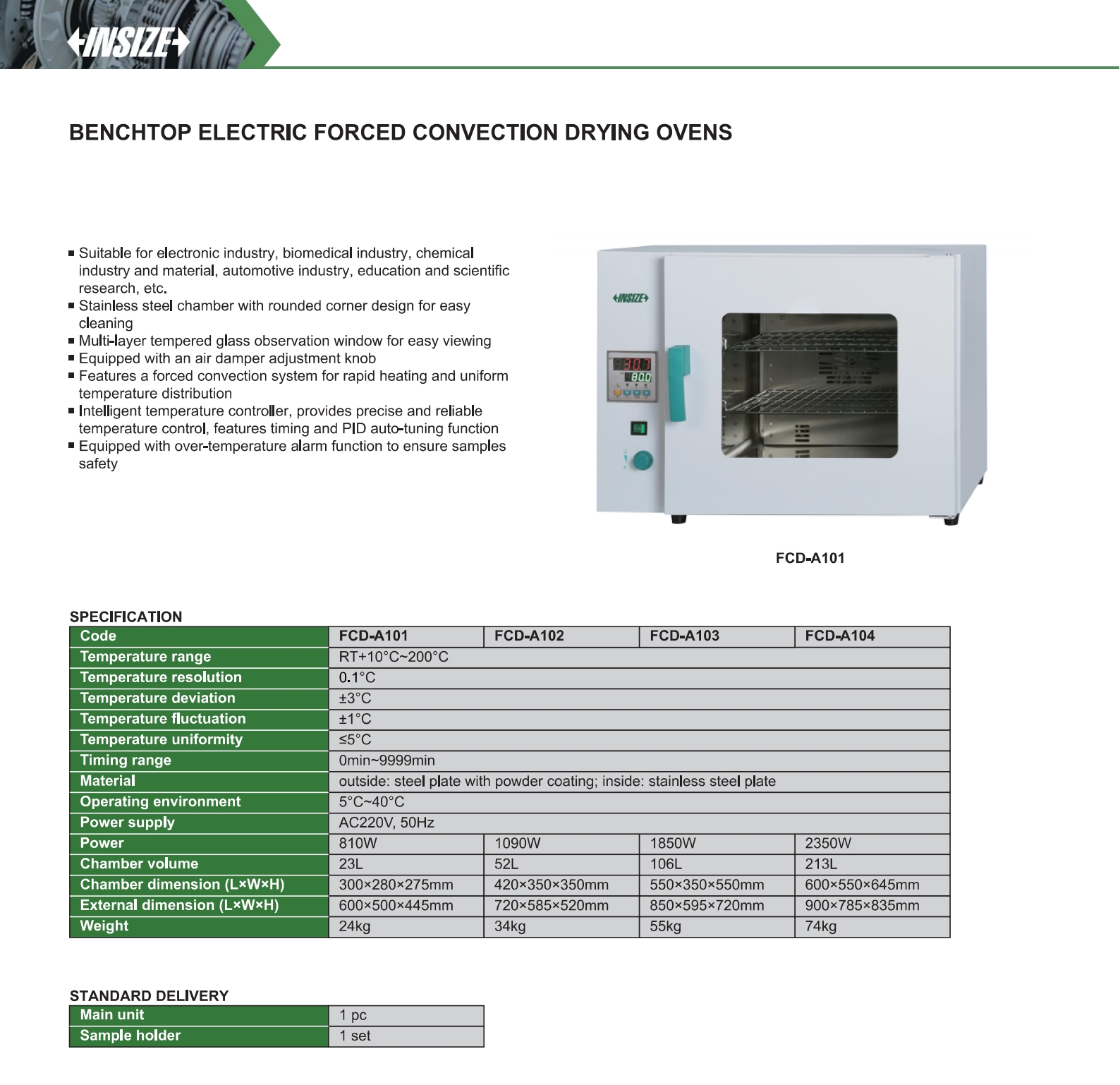 | FCD-A101 | RT+10°C~200°C | 23L |