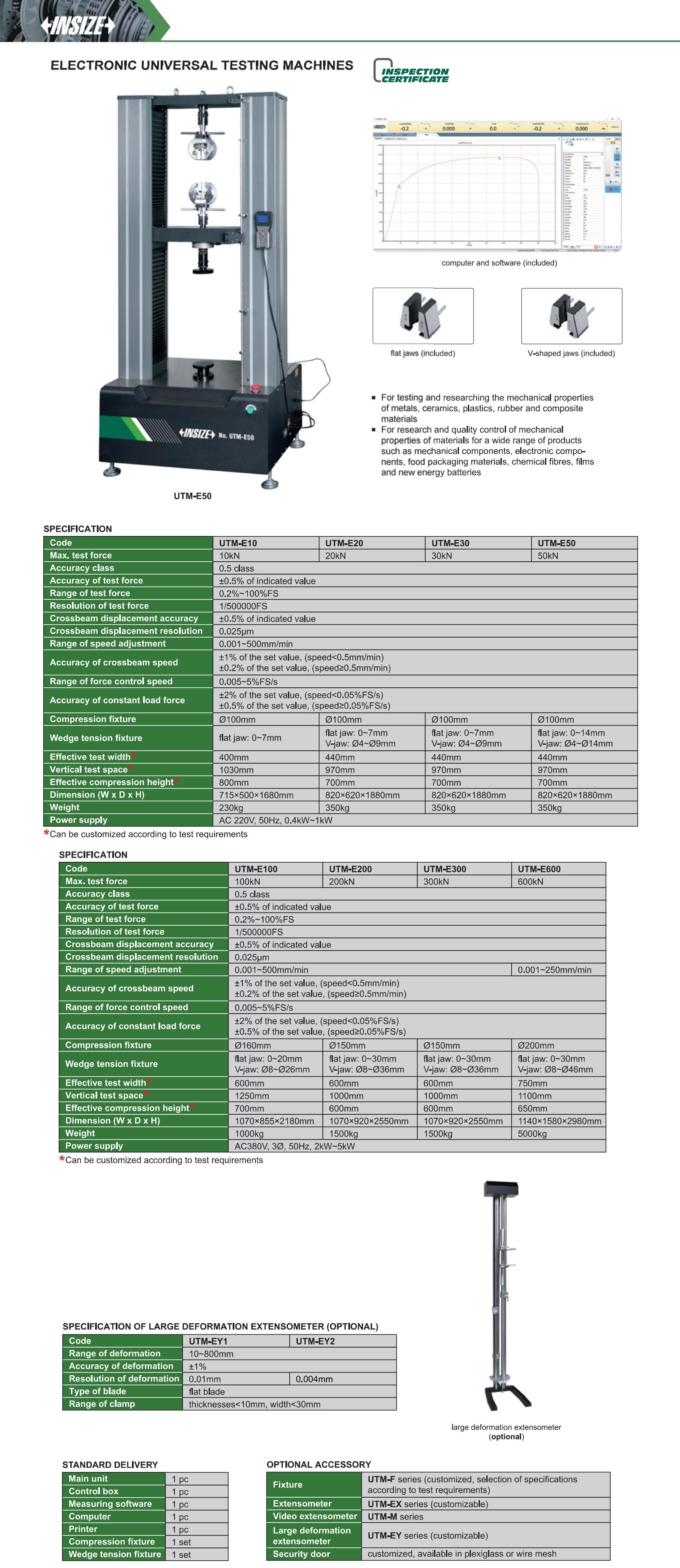 | UTM-E50 | electronic | 50kN | ±0.5% |