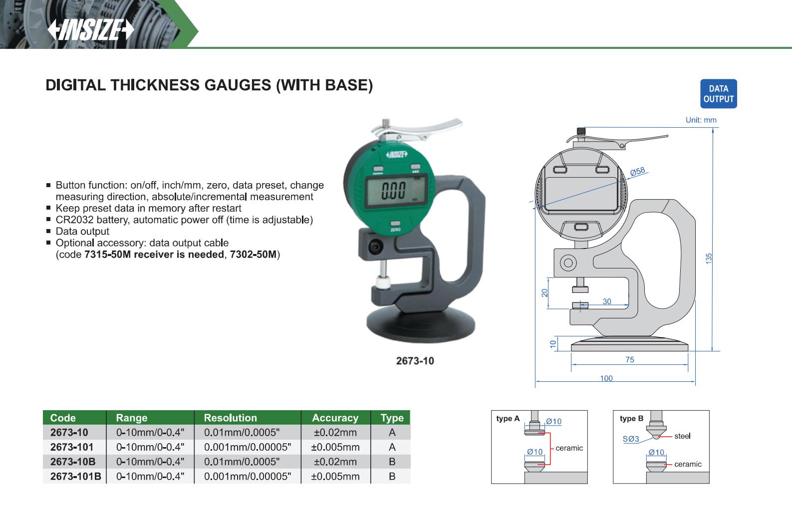 | 2673-10B | 0-10mm/0-0.4" | ±0.02mm | 0.01mm/0.0005" |