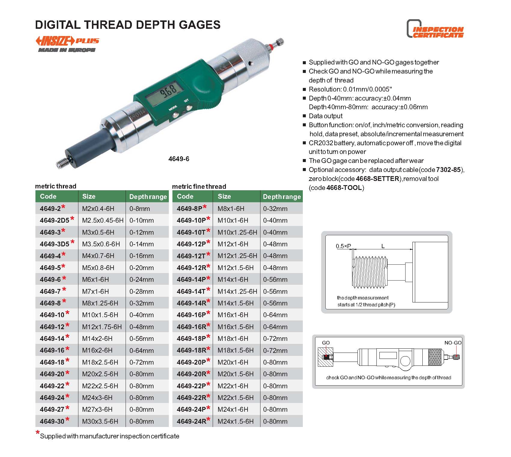 | 4649-16 | ±0.06mm | 0.01mm/0.0005" | 0-64mm | M16x2-6H |