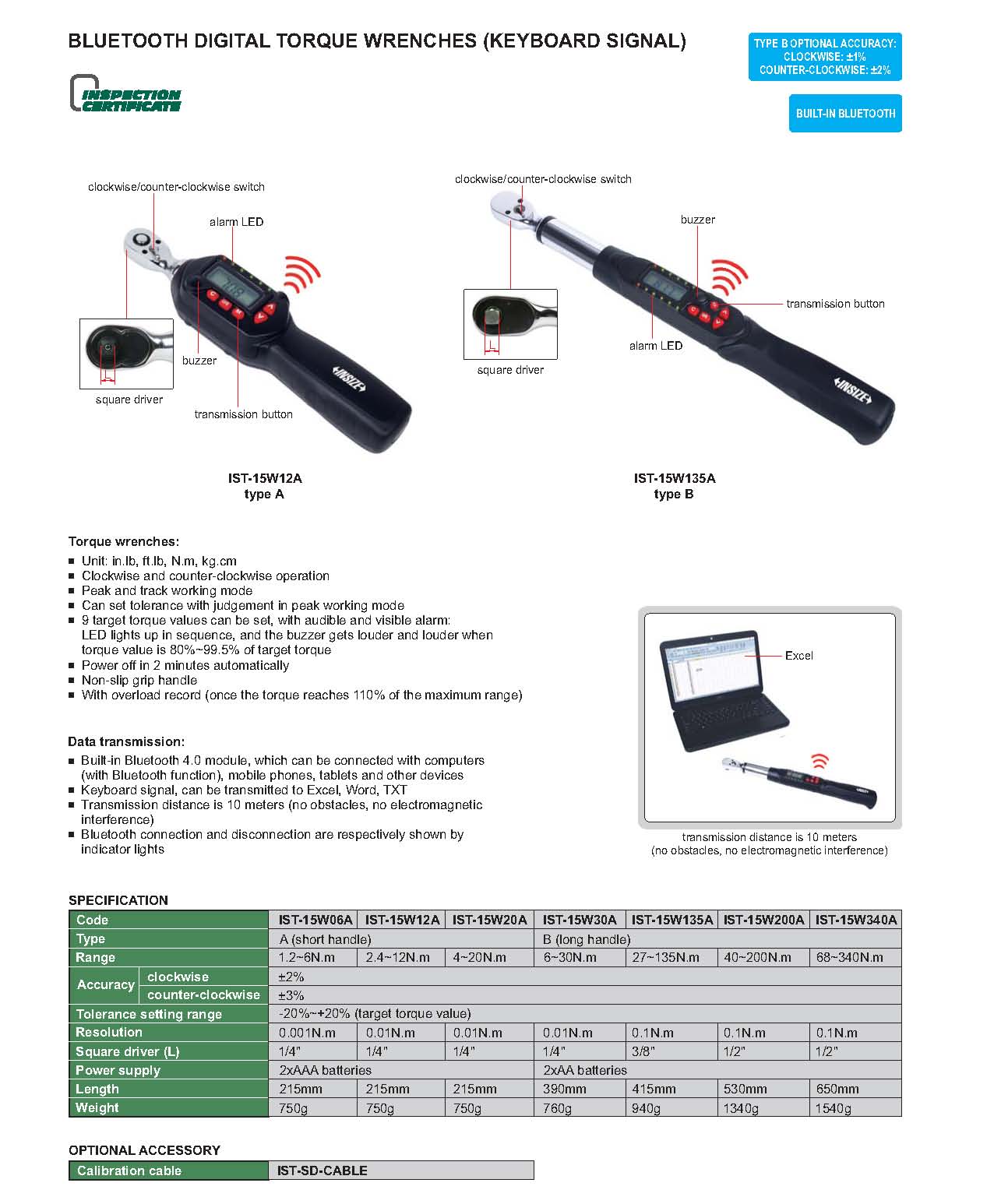 | IST-15W12A | Digital | 2.4~12N.m | Wireless transmission (keyboard signal) | Digital display | Fixed ratchet head |