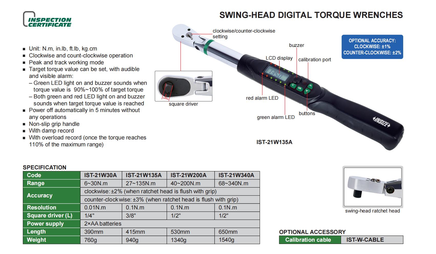| IST-21W30A | Digital | 6~30N.m | No transmission | Digital display | Swing ratchet head |