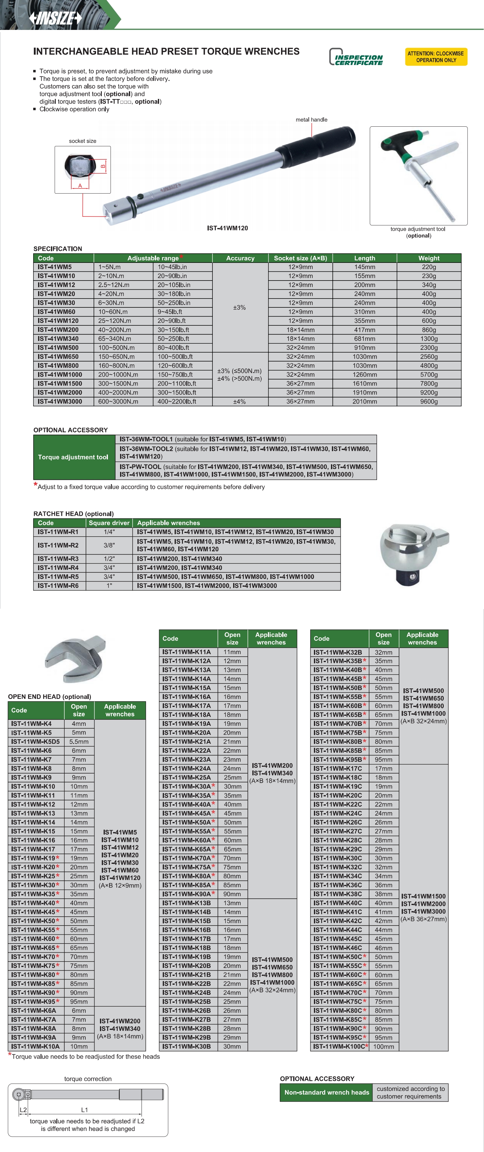 | IST-41WM1000 | Mechanical Preset | 200~1000N.m, 150~750lb.ft | Preset fixed-value | Interchangeable head |