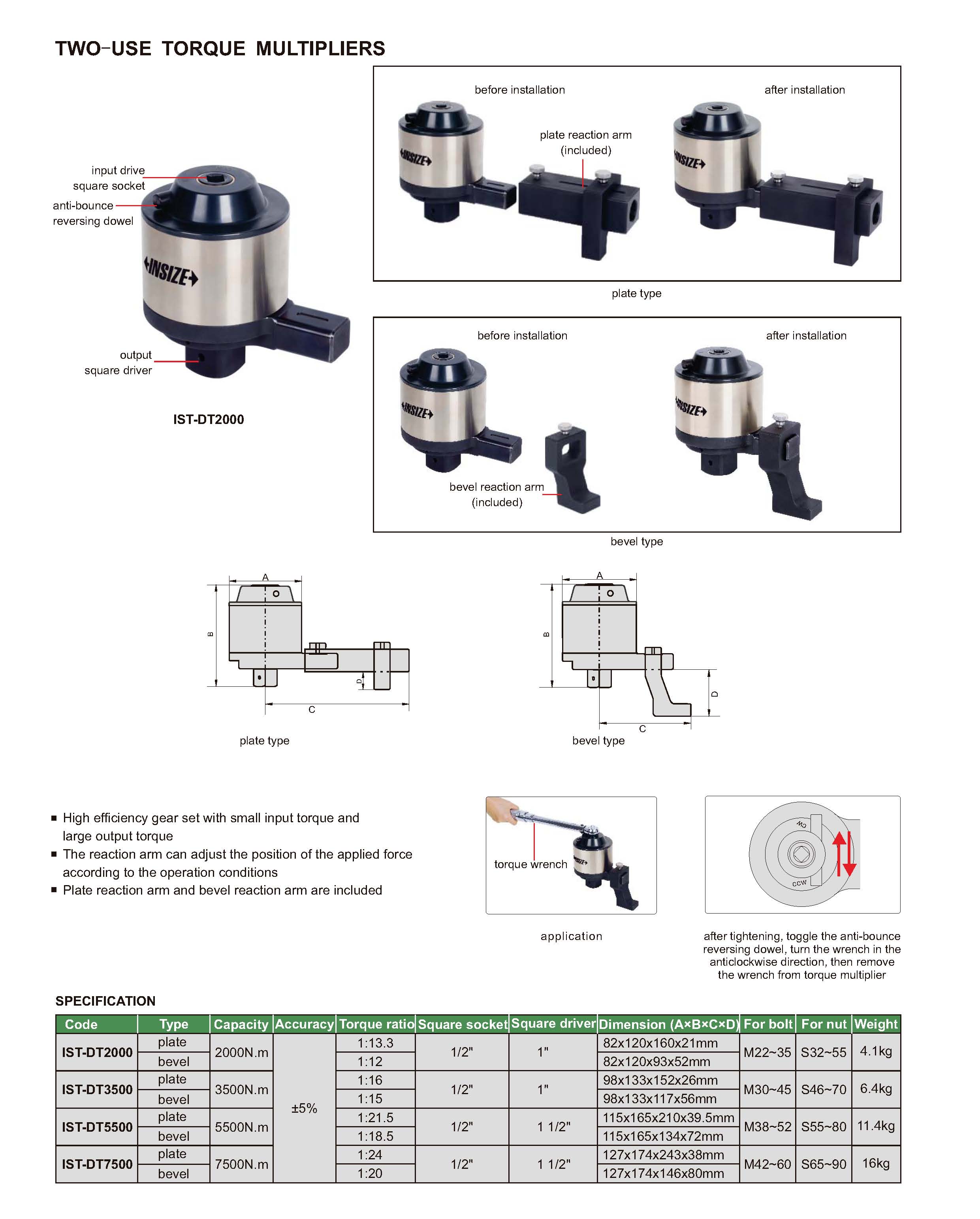 | IST-DT2000 | Mechanical multiplier | 2000N.m | No torque display | Fixed ratchet head |