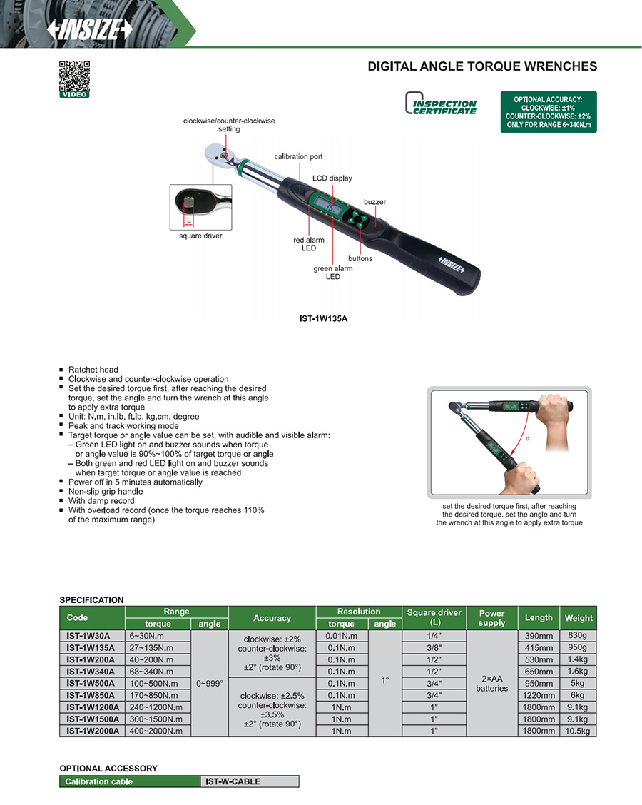 | IST-1W135A | digital | 27~135N.m | no transmission | digital display | fixed ratchet head |