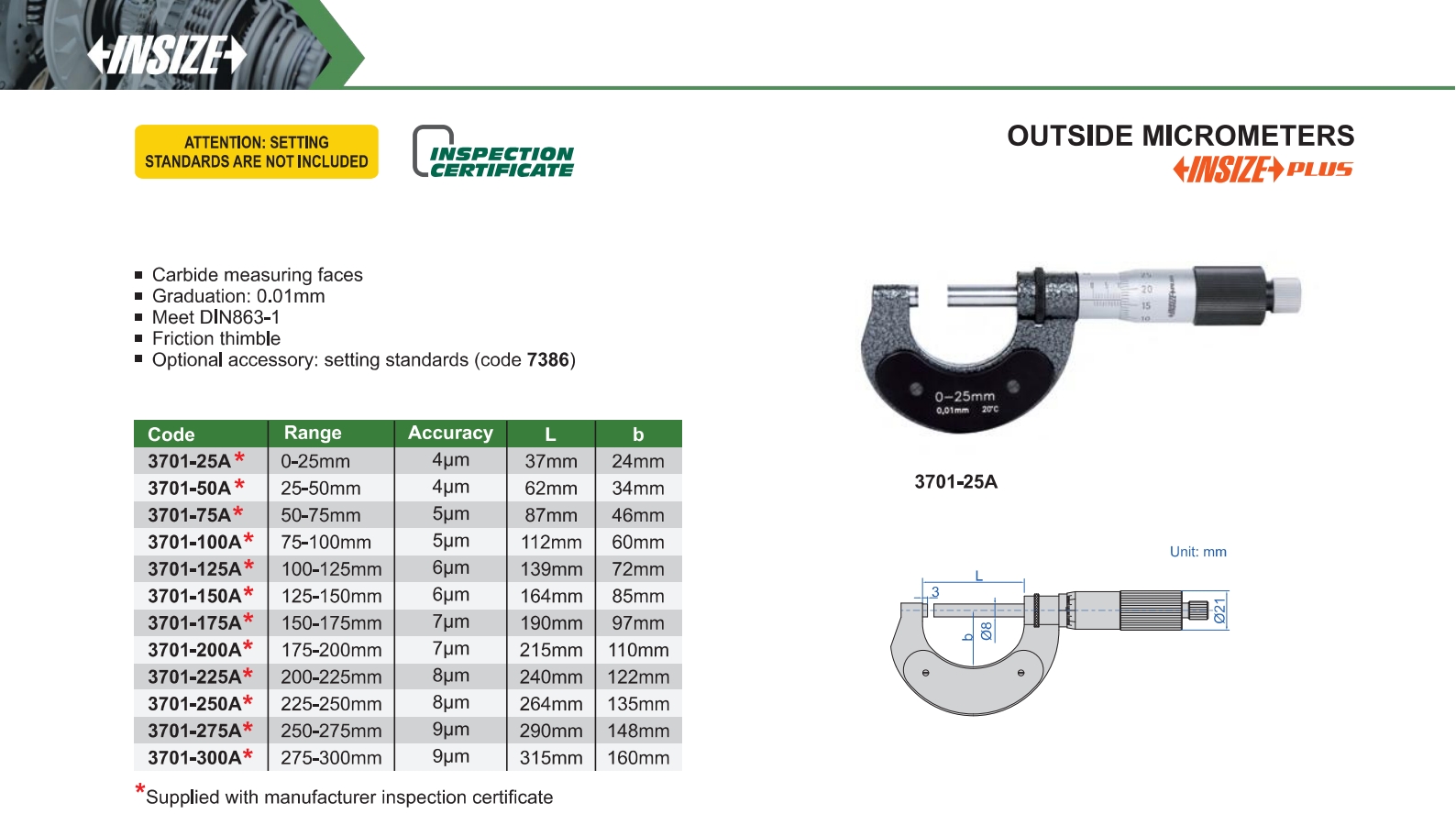 | 3701-25A | 0-25mm | 4µm | 0.01mm |