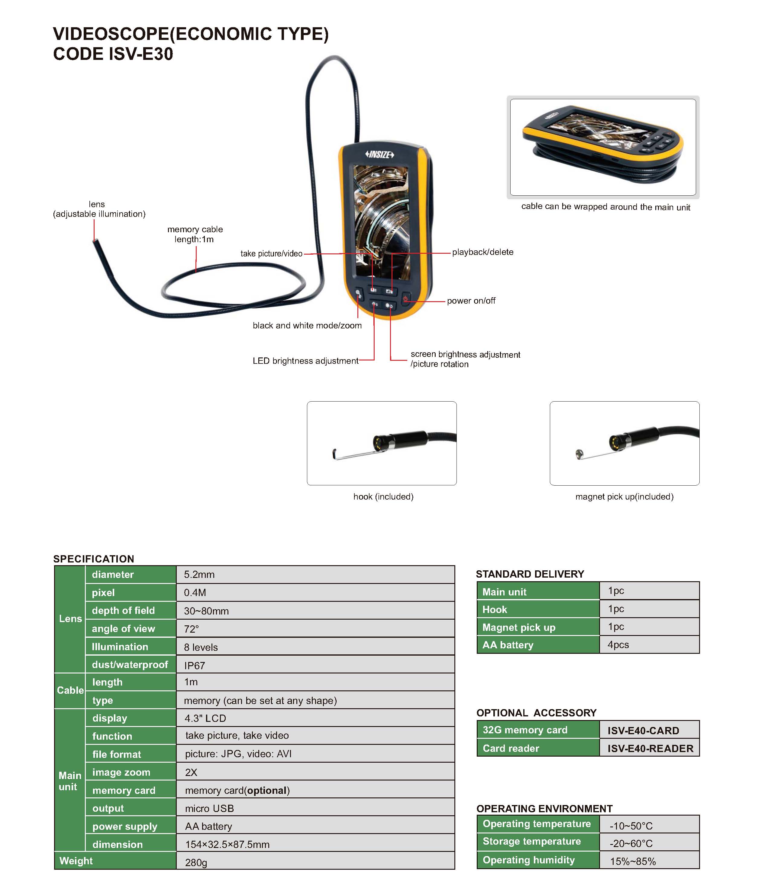 | ISV-E30 | 0.4M | memory (can be set at any shape) | front view | 5.2mm | 1m | no | front LED |