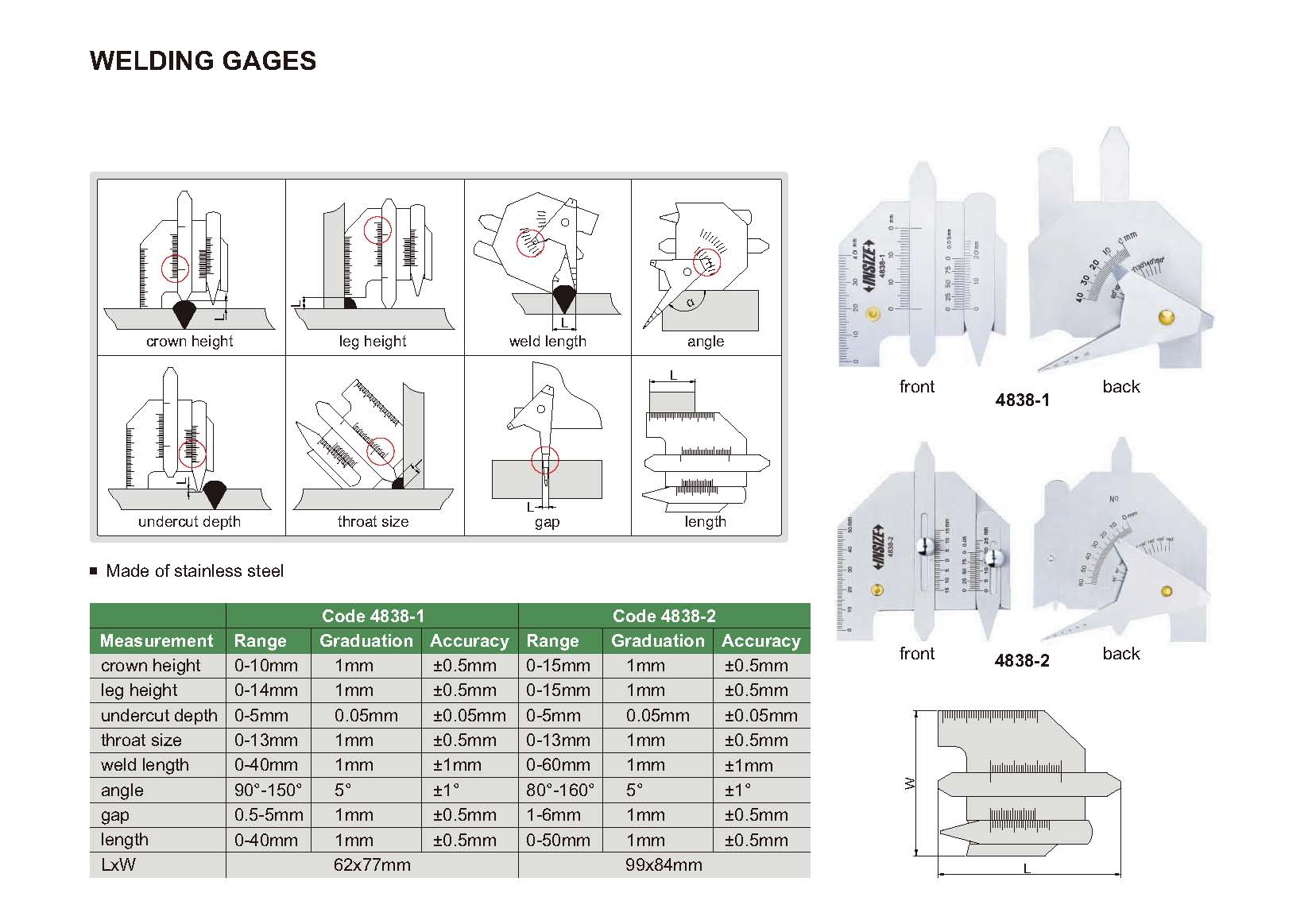 | 4838-2 | 0-60mm | ±1mm | 1mm | weld length |