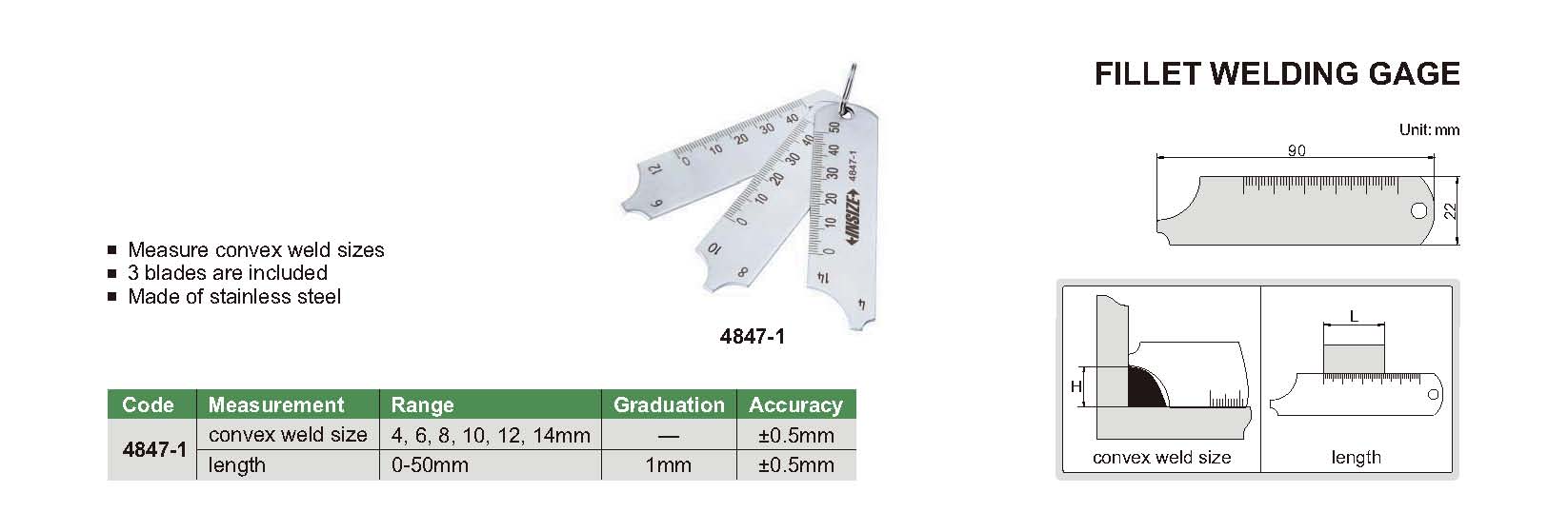 | 4847-1 | 4, 6, 8, 10, 12, 14mm | ±0.5mm | — | convex weld size |